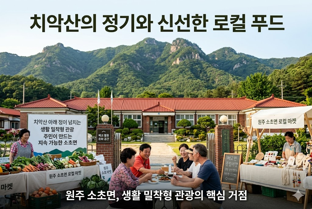 원주 소초면은 치악산의 정기와 신선한 로컬 푸드가 결합된 '생활 밀착형 관광'의 핵심 거점입니다. 단순한 경유지를 넘어 주민 자치 기반의 로컬 거버넌스와 폐교 및 유휴 시설을 활용한 인프라 재해석을 통해 지속 가능한 관광 모델을 구축하고 있습니다.